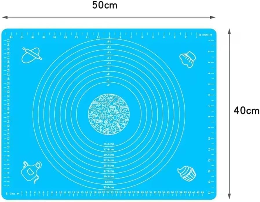 - مفرش عجين سيليكون كبير مع القياسات غير لاصق للخبز والمعجنات وغيرها ، قطعة واحدة ، لون ازرق....من رنا ستور