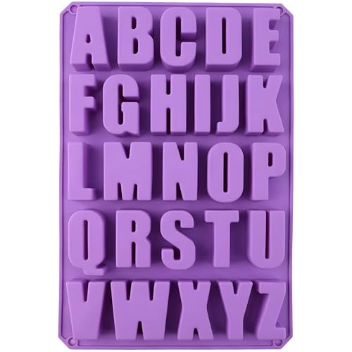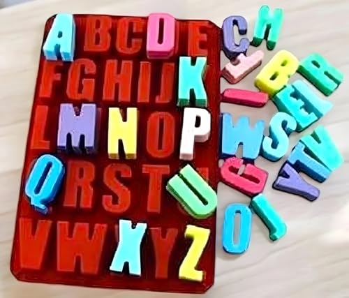 - تصميم الحروف الأبجدية: قالب سيليكون كبير مكون من 26 حرف مثالي لصنع حروف زينة في الشوكولاتة أو الفوندان أو مكعبات الثلج.
