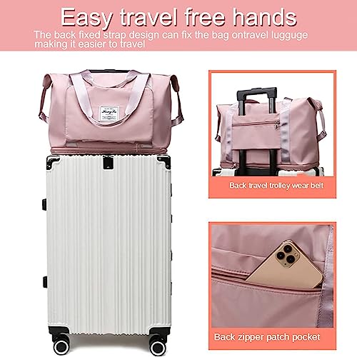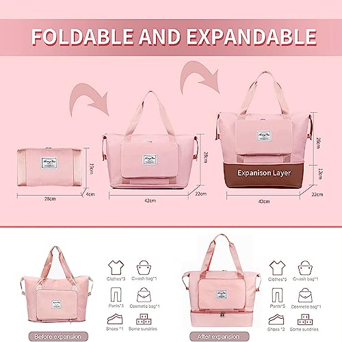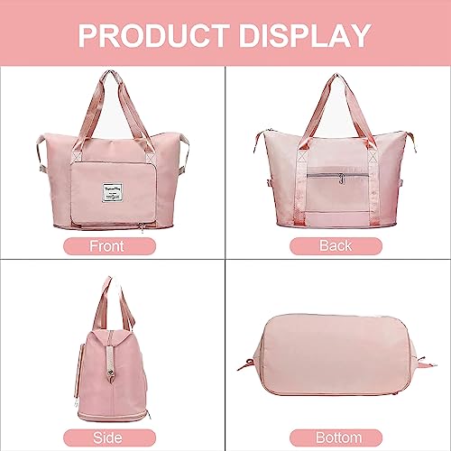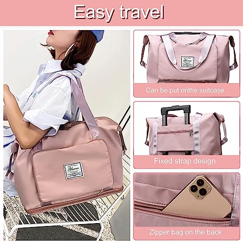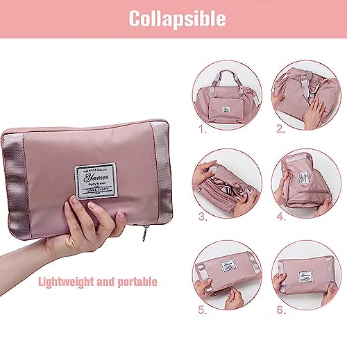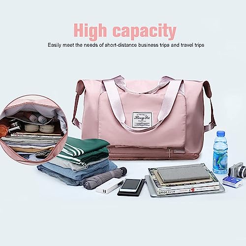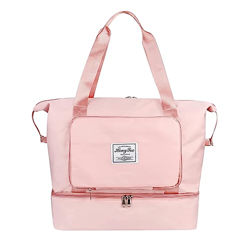 HIUAUIH - شنطة سفر قابلة للطي بسعة كبيرة، شنطة يد مقاومة للماء للنساء لعطلة نهاية الأسبوع، شنط يد خفيفة الوزن لعطلة نهاية الأسبوع والتسوق والجيم, زهري, عصري