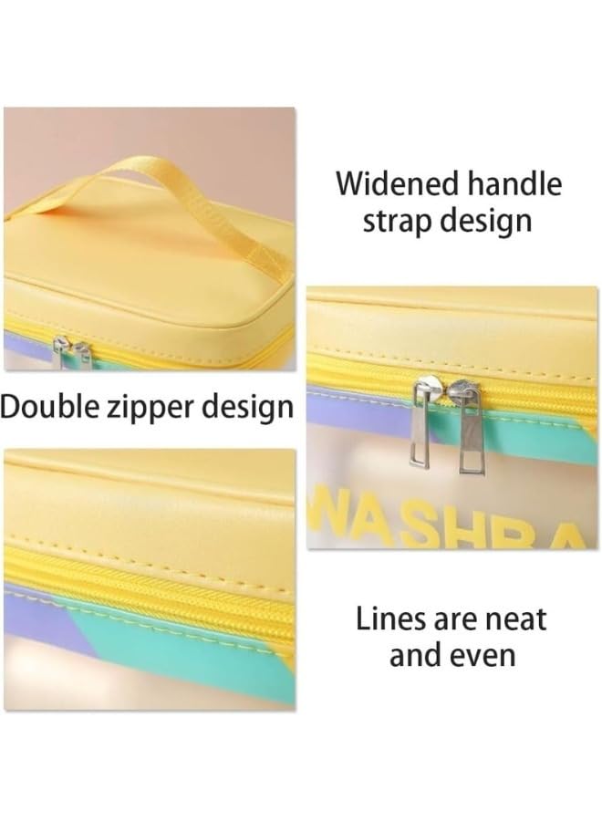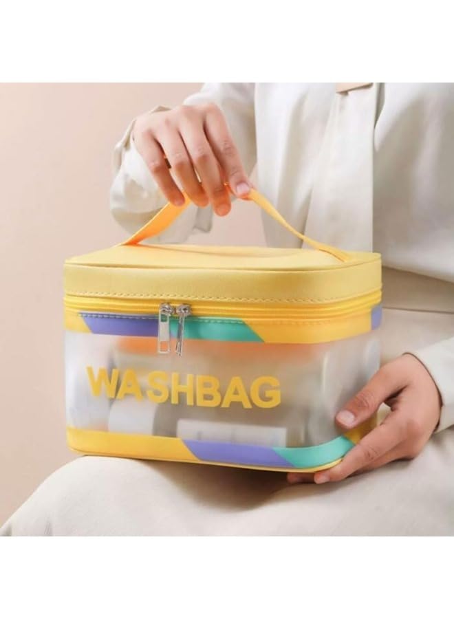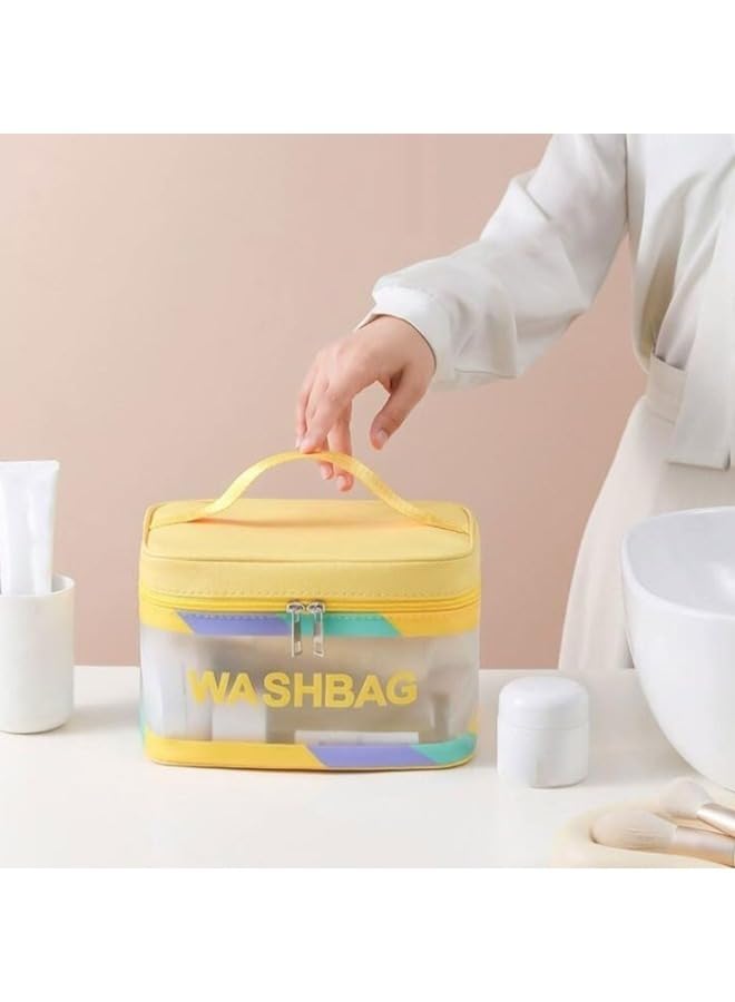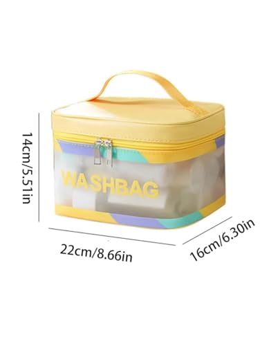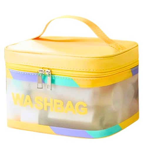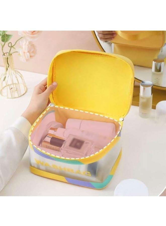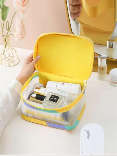 Generic - شنطة مستحضرات تجميل كبيرة مربعة شفافة محمولة ومقاومة للماء، شنطة تنظيم مكياج ضرورية للسفر والنساء (أصفر)