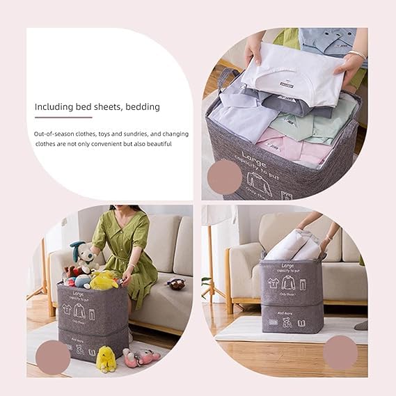 Generic - سلة تخزين كبيرة للملابس والبطانيات والالعاب واللحاف، مصنوعة من الكتان شديد التحمل، متوفرة بالوان متنوعة. مع سحاب