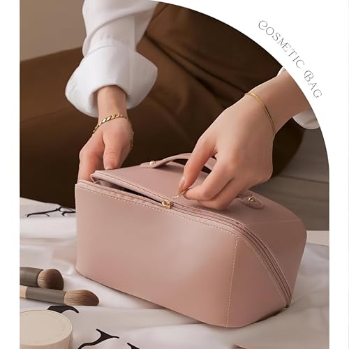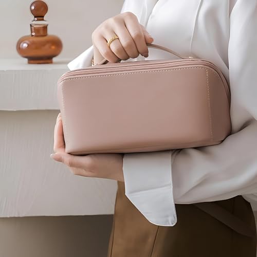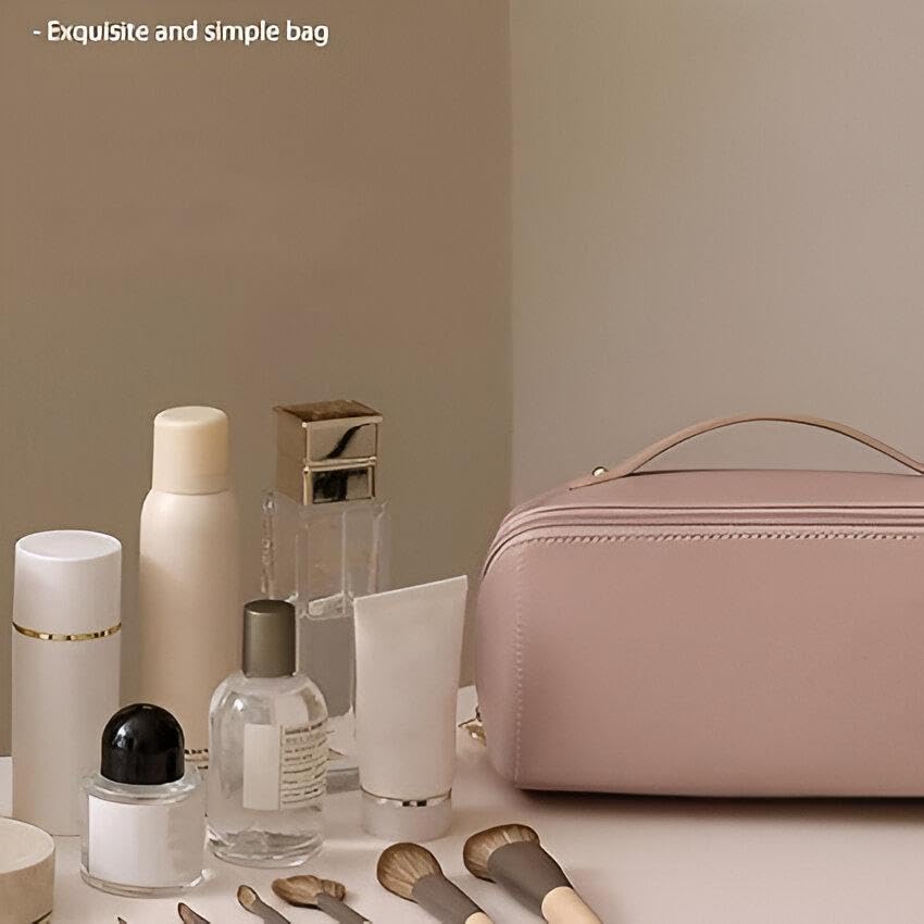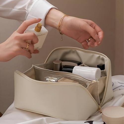 Generic - حقيبة مستحضرات تجميل كبيرة مقاومة للماء للنساء: منظم أدوات تجميل محمول وواسع مصمم للحفاظ على مستحضرات التجميل وأدوات التجميل (بيج)