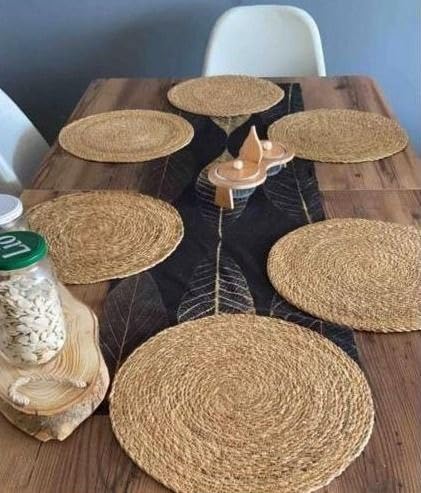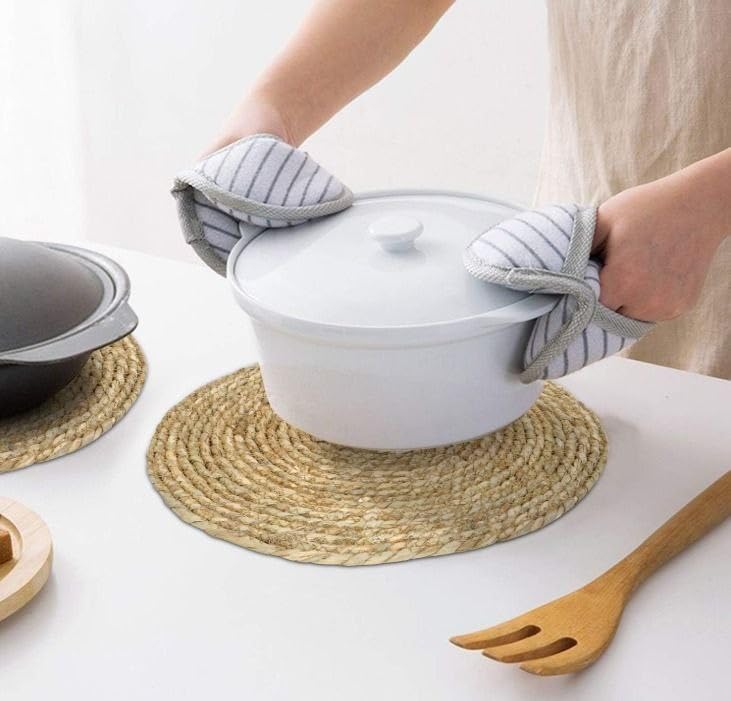 Generic - مفارش كبيرة من الخوص لطاولة الطعام، مفارش مصنوعة يدويا من ورد النيل للاطباق الساخنة، مفارش دائرية معزولة للمطبخ (القطر: 36 سم)، 1 قطعة
