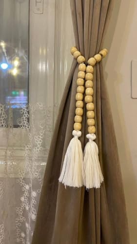 Generic - عقد خرز خشبي كبير لديكور المنزل من الخشب الطبيعي مع شراشيب، زينة بنمط بوهيمي ريفي لطاولة القهوة، والصواني المقسمة، وتعليقات الحائط من ماركة فلامنجو (لون عشوائي).
