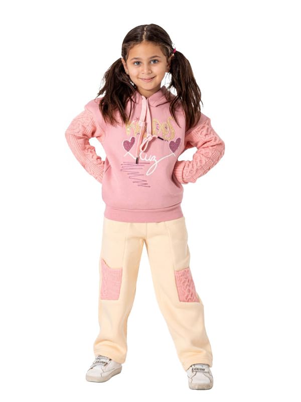 LARK ART - بدلة رياضية قطنية للبنات مع تفاصيل محبوكة واكمام طويلة وسروال من لارك ارت