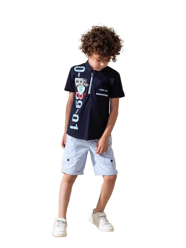 LARK ART - طقم مكون من قطعتين مكون من قميص قطن بوبلين وشورت جبردين للاولاد من لارك ارت 8858