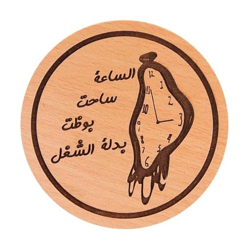 Laser Crafts - قاعدة أكواب خشبية بقطر 9.5 سم، محفورة بالليزر بشعار على شكل ساعة من ليزر كرافتس