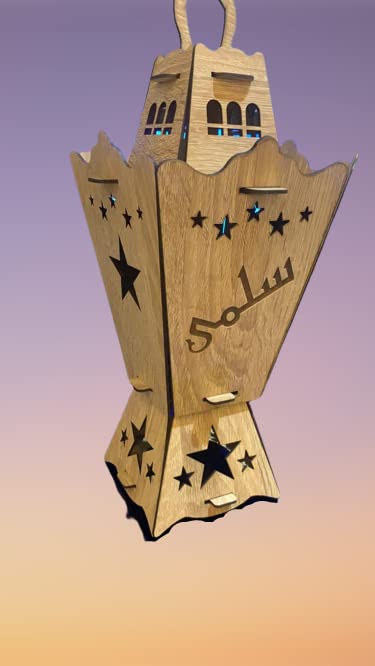 - نوع الإضاءة: - فوانيس رمضان. العلامة التجارية: - جيني المقاس: - 35 سم المادة: - أغنية رمضان من خشب ام دي اف بصوت وضوء