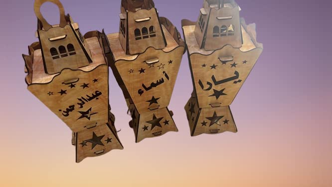 Generic - فانوس خشبي محفور بالليزر مع وحدة اضاءة وصوت 35 سم اسمه محمود