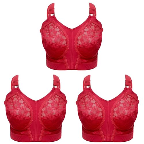 Lasso - لاسو حمالة صدر باسك فائقة الدعم بقالب D للنساء، لون احمر، مقاس 38 EU (عبوة من 3 قطع)