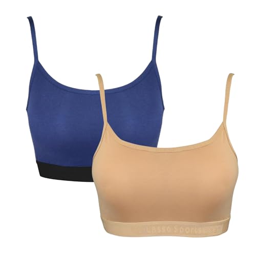 Lasso - لاسو طقم حمالة صدر رياضية مبطنة للنساء، حزام سباغيتي، عبوة من قطعتين