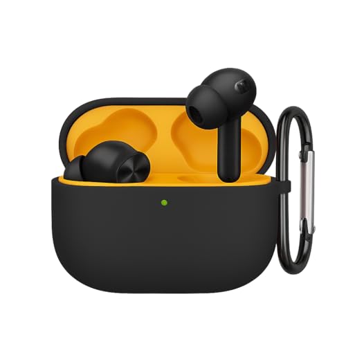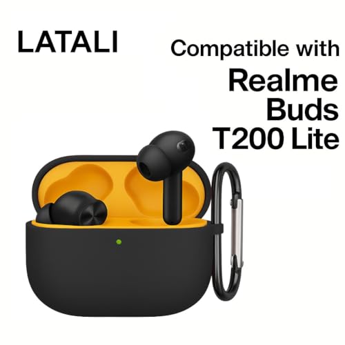 LATALI - جراب سيليكون جديد من لاتالي متوافق مع سماعات ريلمي بودز T200 لايت (2025)، غطاء حماية كامل 360 درجة مقاوم للغبار والصدمات مع خطاف (الغطاء فقط) (اسود)