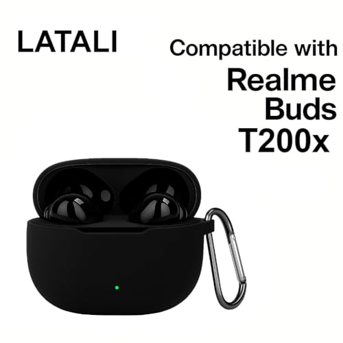 LATALI - جراب سيليكون جديد من لاتالي متوافق مع سماعات ريلمي بودز T200x (2025)، غطاء حماية كامل 360 درجة مقاوم للغبار والصدمات مع خطاف (الغطاء فقط) (اسود)