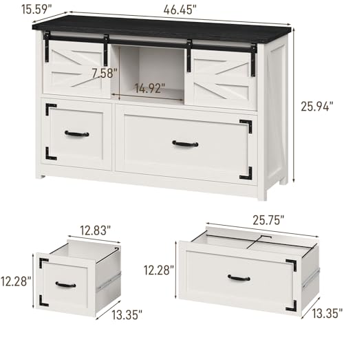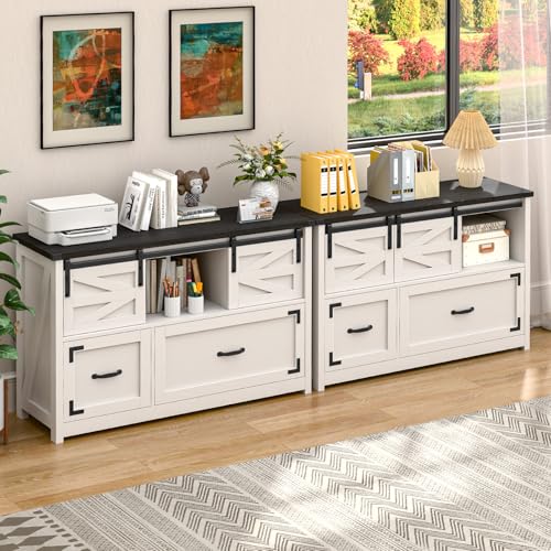 Vabches - خزائن ملفات جانبية بدرجين مع ابواب حظيرة منزلقة، خزانة ملفات بيت المزرعة مع درجين للمكتب المنزلي، خزائن لتنظيم الملفات لتعليق الخطابات/القانونية/F4/A4 (اسود)