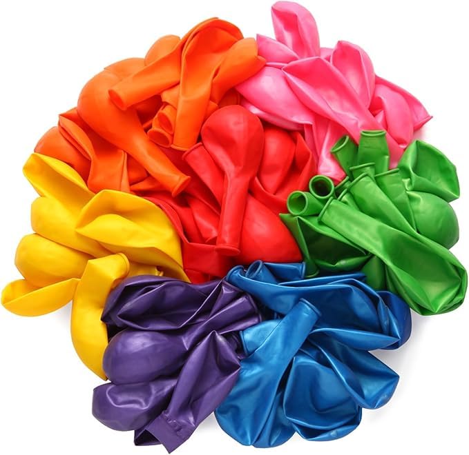- محتويات العبوة: 100 بالون لاتكس باللون متعدد الالوان اللامع في كل عبوة