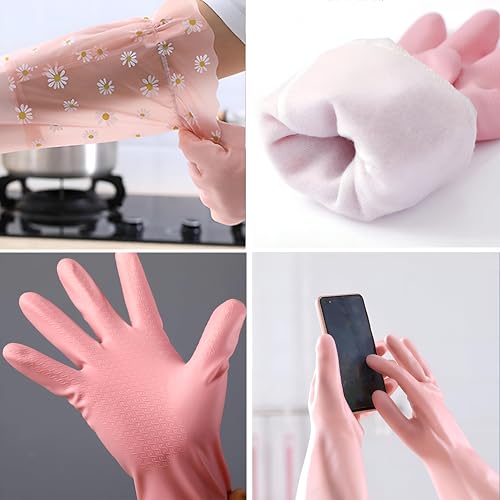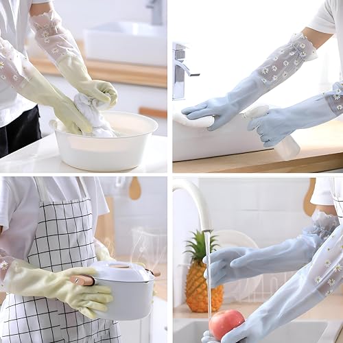 Generic - قفازات لاتكس متينة قابلة لإعادة الاستخدام، قفازات مطاط للتنظيف وغسل الصحون والأعمال في المنزل والحمام، تصميم واقي مع ملاءمة مريحة، متعددة الألوان