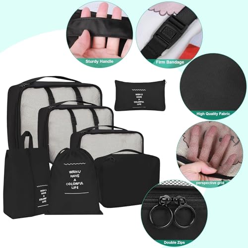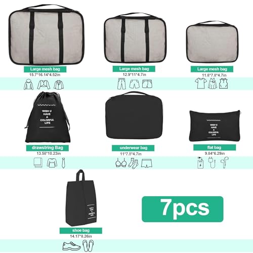LATIQ MART - مكعبات تنظيم من لاتيك مارت، بتصميم عملي، باللون الأسود، مصنوعة من قماش نايلون أكسفورد، قابلة للطي وخفيفة الوزن، مجموعة من 7 قطع