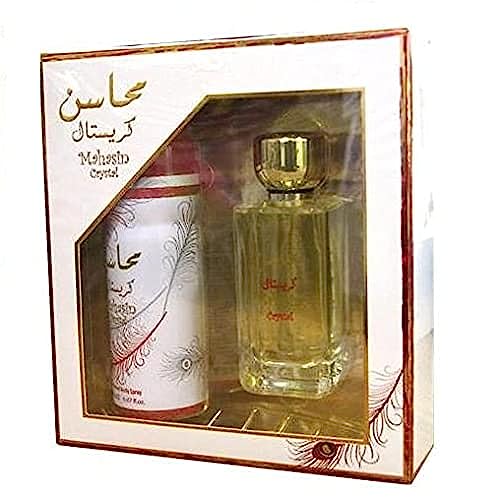 Lattafa - طقم هدية محاسن كريستال من لطافة للنساء مكون او دى بارفان بسعة 100 مل ومزيل عرق 200