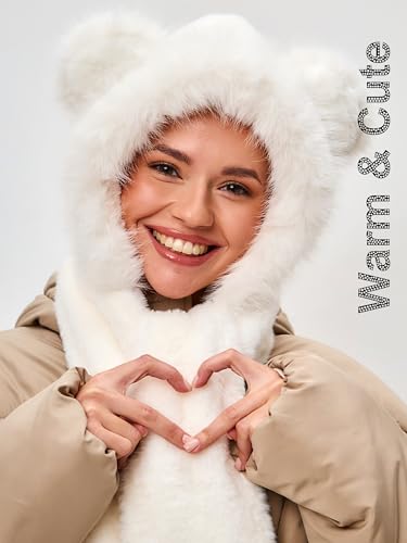LATTEMARMALATTE - مجموعة دافئة 3 في 1 تتضمن قبعة شتوية بتصميم أذني دب لطيفة مع سكارف وجوانتي من القطيفة مريحة ومقاومة للرياح للطقس البارد للبنات من لاتيمارمالات