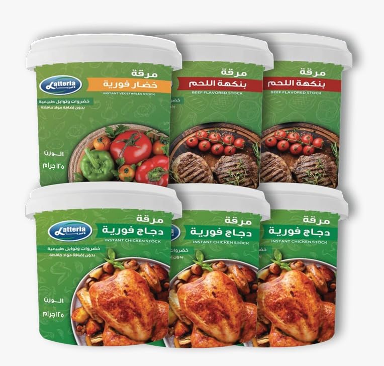LATTERIA - مرقة فورية من لاتيريا 6 برطمانات، 125 جرام لكل منها (3 دجاجة + 1 خضروات + 2 لحم بقري)