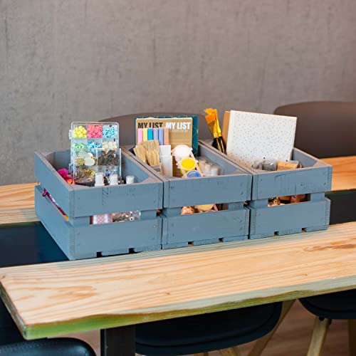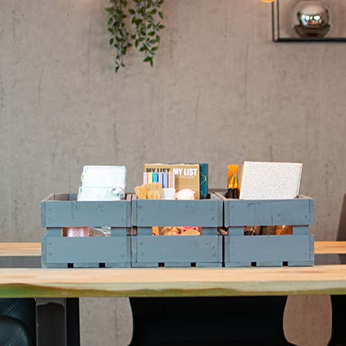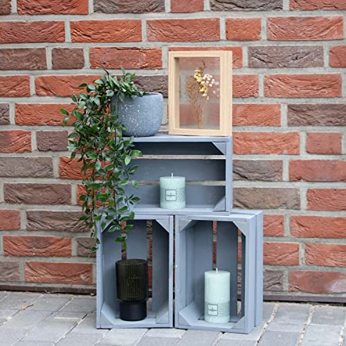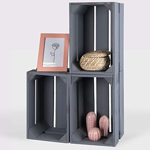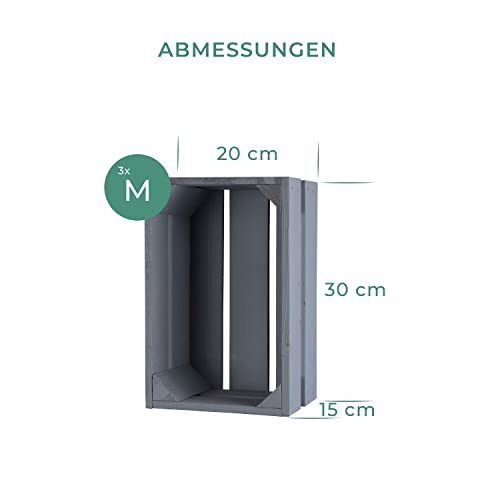 LAUBLUST - صناديق خشبية عتيقة من لاوبلاست، مجموعة من 3 صناديق نبيذ وصناديق فواكه، صناديق تخزين خشبية، صناديق هدايا، صناديق أثاث وديكور (رمادي، 30 × 20 × 15 سم، M)