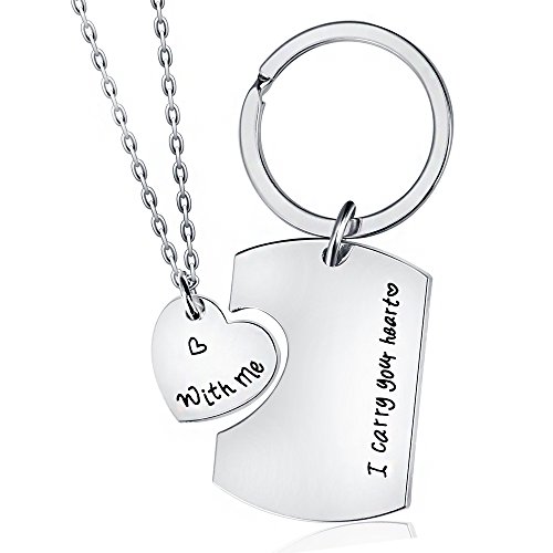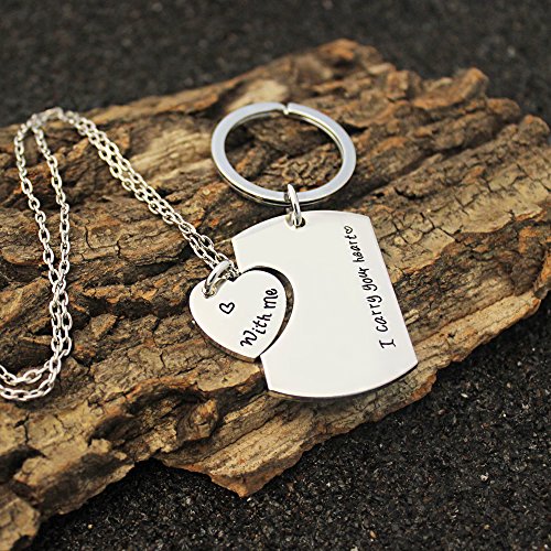 lauhonmin - لاوهونمين سلسلة مفاتيح وقلادة للازواج بعبارة «I Carry Your Heart with Me» للنساء والرجال، هدية لمحبي عيد الحب، قطعتين