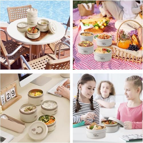 ALIM - لانش بوكس حراري قابل للاستخدام في الميكروويف، 3 صناديق مستطيلة معزولة تتضمن شنطة، صندوق مقاوم للتسرب من الفولاذ المقاوم للصدأ للرجال والنساء ومجموعة الإفطار المدرسية من اليم