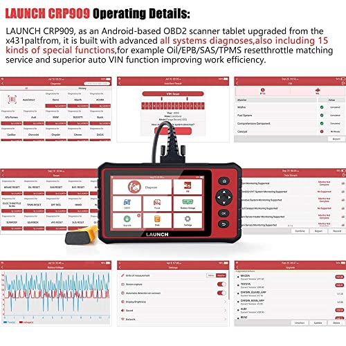 LAUNCH - أداة تشخيص السيارة X431 CRP909C بجهاز OBD2 واي فاي مع ماسح ضوئي كامل لأنظمة السيارات، ايه بي اس واس ايه اس ودي بي اف واي بي بي وإعادة ضبط الزيت ماسح ضوئي جهاز OBD 2، ضمان لمدة عامين من لونش.
