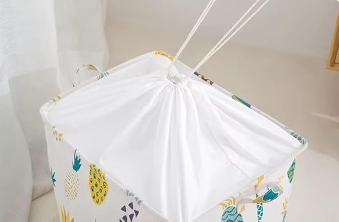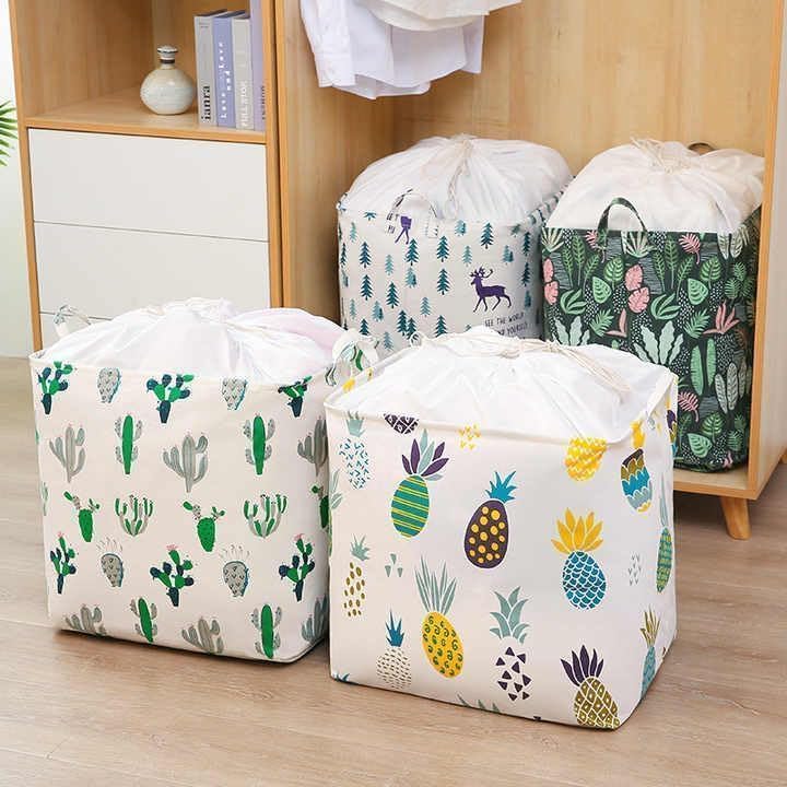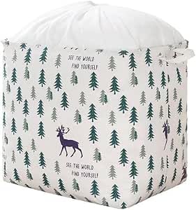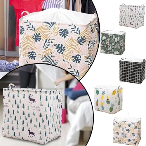 Generic - سلة غسيل كبيرة سعة 100 لتر، سلة غسيل قابلة للطي مع مقبض ورباط، حقيبة تخزين قطنية غير منسوجة مقاومة للماء (تصميمات متنوعة)