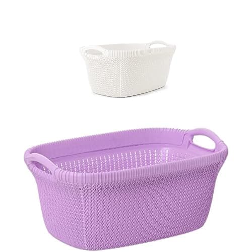 El Helal and Golden star - سبت غسيل بيضاوي بتصميم نخيل، أبيض + سبت غسيل بيضاوي بتصميم نخيل، بنفسجي