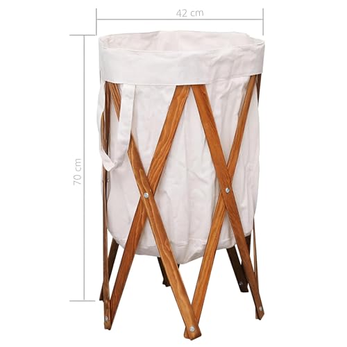 Generic - سلة غسيل - حل تخزين انيق من القماش الخشبي والكتان بارتفاع 70 سم بقطر 62 سم وعمق 45 سم لتنظيم فعال