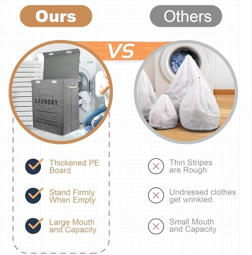 - تصميم أنيق: الجزء الخارجي من القماش مزين بطبعة عبارة (Deluxe Laundry Service) بنمط عتيق، لإضفاء مظهر أنيق وجذاب.