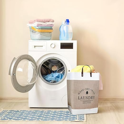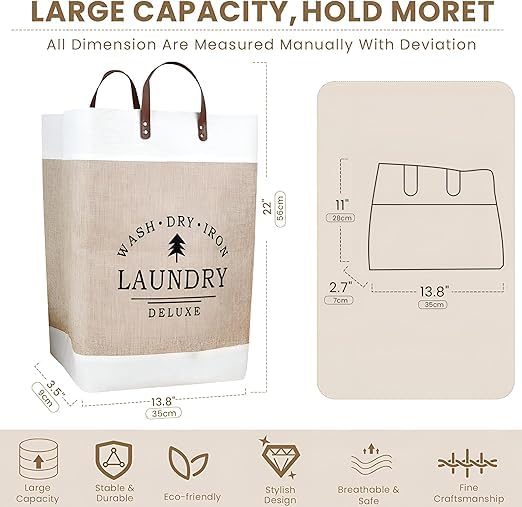 - تتميز سلة الغسيل الكبيرة القابلة للطي من الكتان بمقابض سهلة الحمل، مما يوفر مزيدًا من الراحة عند نقل الغسيل من وإلى الغسالة. يعزز عنصر التصميم المدروس هذا تجربة المستخدم وراحته.