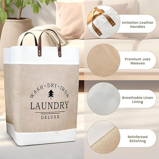 - يساعد القماش جيد التهوية المستخدم في سلة الغسيل هذه على منع الروائح ويحافظ على ملابسك منتعشة، حتى عند تخزينها لفترات طويلة. هذا مهم بشكل خاص للمنتجات التي قد تكون رطبة أو متسخة.