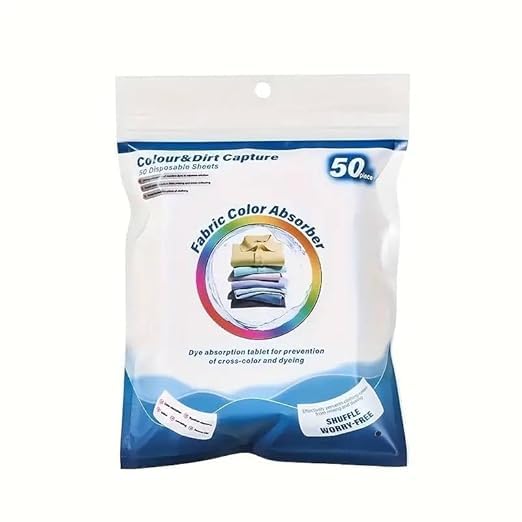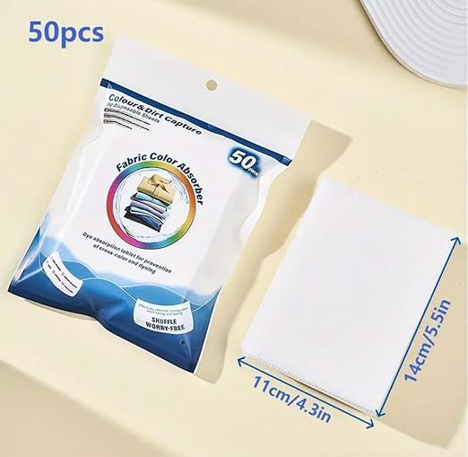 - كمية اقتصادية: تحتوي العبوة على 50 قطعة من أوراق امتصاص الألوان، مما يوفر حلاً طويل الأمد لاحتياجات الغسيل اليومية