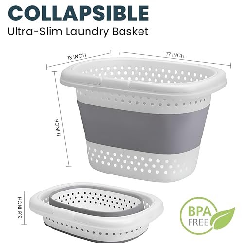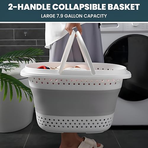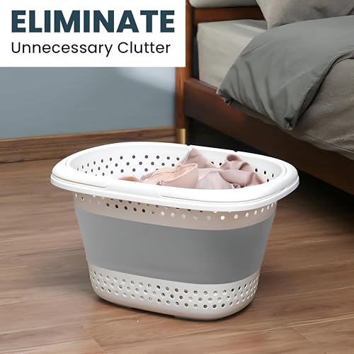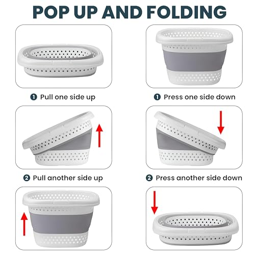 Generic - سلة غسيل - سلة شبكية منبثقة قابلة للطي لتخزين الملابس، سلة خفيفة الوزن وسهلة الحمل لغرف النوم وغرفة الاطفال والسفر والتخييم والتنظيم المنزلي اليومي (رمادي)
