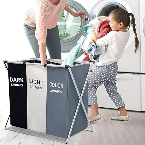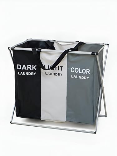 Generic - سلة غسيل - حقيبة قابلة للطي مكونة من 3 أقسام مقاومة للماء بإطار من الألومنيوم لتنظيم الغسيل النظيف والمتسخ في الحمام وغرفة الغسيل وغرف النوم
