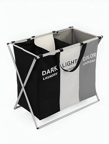 - تتميز سلة الغسيل هذه بثلاث حجرات واسعة، وهي مصممة لمساعدتك على فرز ملابسك بكفاءة. تجعل الجيوب المنفصلة من السهل تنظيم الملابس البيضاء والملونة والحساسة، مما يبسط روتين الغسيل الخاص بك.
