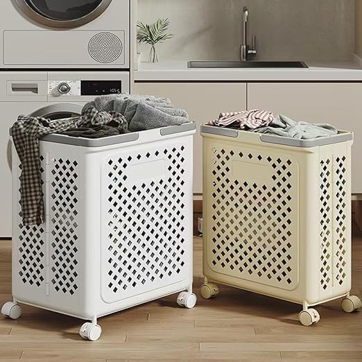 Generic - سلة غسيل متعددة الاستخدامات قابلة للطي للتخزين – مزودة بـ 4 عجلات لسهولة الحركة ويدين للحمل – خامة عالية الجودة للتخزين المنزلي Lo