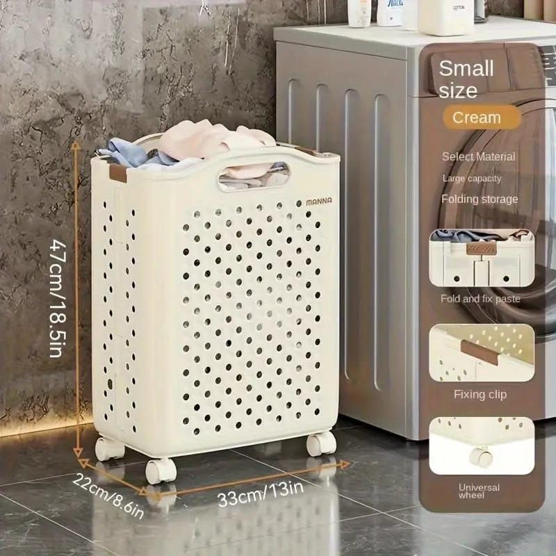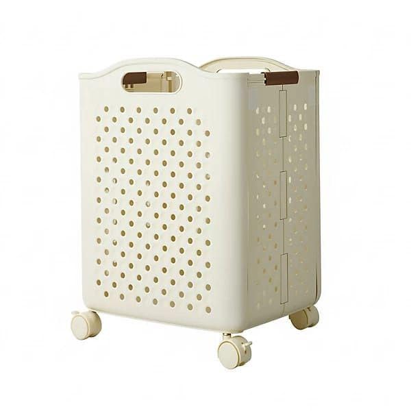 - مزودة بـ 4 عجلات دوارة قوية تتيح حركة سلسة في جميع الاتجاهات، مما يسهل نقل الملابس الثقيلة من غرفة إلى أخرى دون الحاجة لحمل السلة أو بذل مجهود بدني كبير، لتجربة أكثر راحة وسلاسة داخل المنزل.