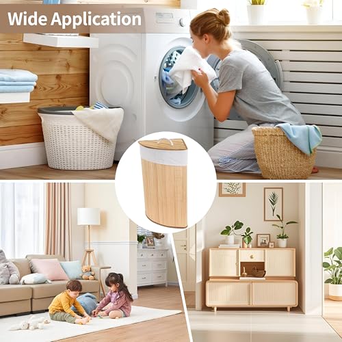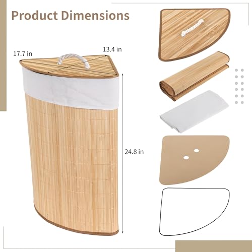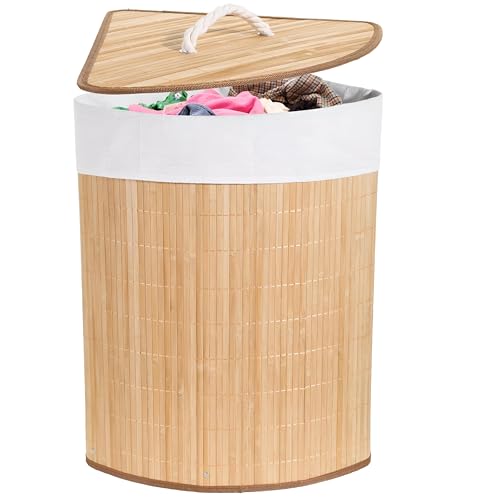 Generic - منظم غرفة الغسيل - سلة زاوية مثلثة قابلة للطي مع غطاء، تصميم منسوج طبيعي ريفي، مثالية لغرفة النوم والحمام وتخزين الغسيل