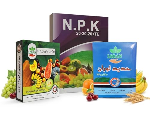 Generic - مجموعة التغذية المتكاملة للنباتات من لوران (Loran) – تشمل NPK 20-20-20، بوتاسيوم 42%، وحديد مخلبي 13% | عبوات اقتصادية 500 جرام لنمو أسرع وتزهير كثيف