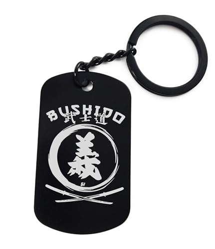 Lauthings - حلقة مفاتيح بوشيدو اليابانية المختلطة للفنون القتالية مع نقش من لوثينغز، ستانلس ستيل، اسود، مقاس واحد