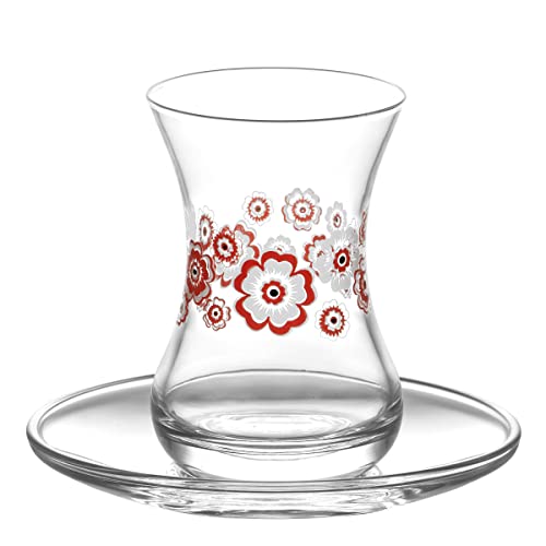 LAV - لاف زجاج كارنافيل / 12 قطعة بما في ذلك الصحون/تصميم انيق، علامة تجارية موثوقة، شكل جذاب للشاي والقهوة/مواد عالية الجودة