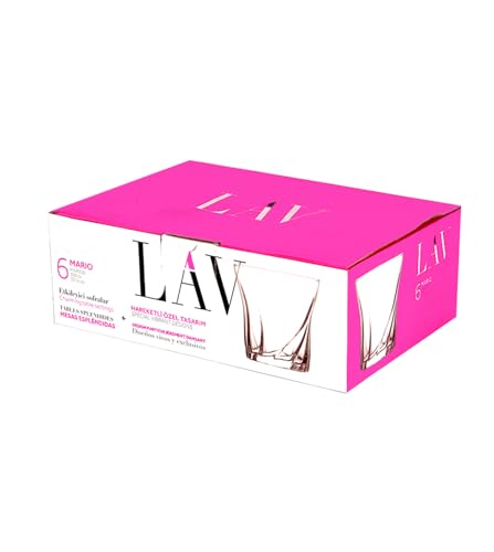 LAV - كاسات زجاجية من ماريو لاف، علامة تجارية موثوقة، شكل جذاب للمياه والمشروبات الفوارة والغازية وعصائر السموزي والعصائر والكوكتيلات، 599 مل، 305 سم³، 6 قطع
