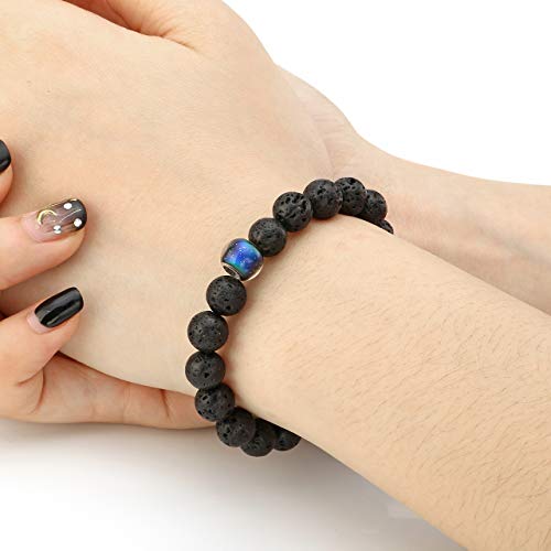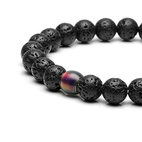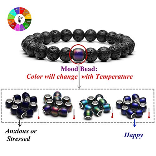 generic - سوار لافا للتخلص من القلق من حجر بركاني اسود طبيعي متغير اللون مع خرز حساس للحرارة للعلاج بالروائح العطرية موزع للزيوت العطرية مجوهرات للرجال والنساء