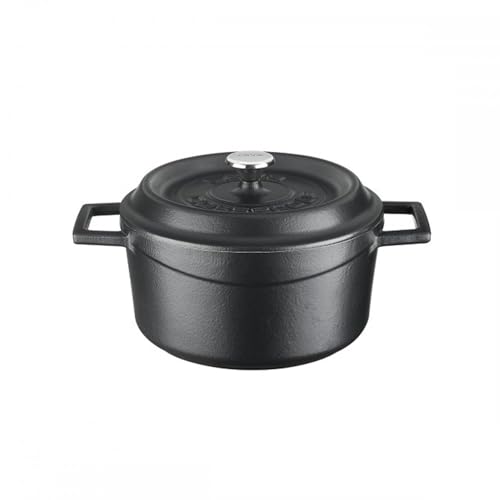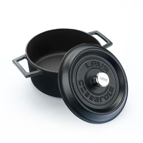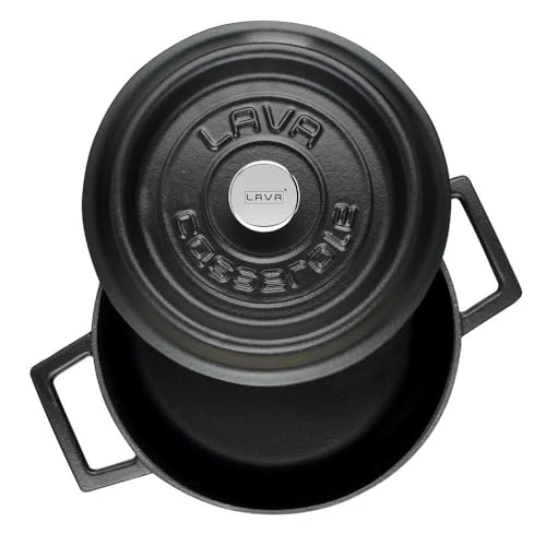 LAVA - كسرولة LV Y TC 20 K2 دائرية من الحديد المصبوب بمقابض ذاتية من الحديد المصبوب من لافا - مقاس 20 × 20 سم - لون أسود