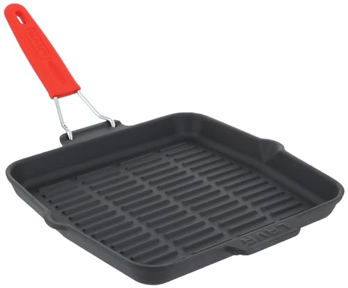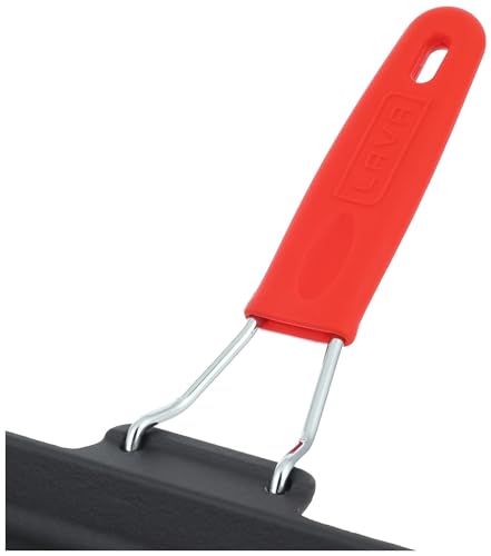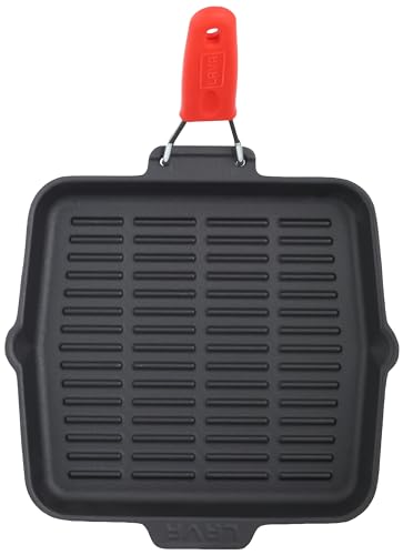 LAVA - طاسة شواء مربعة من الحديد المصبوب بمقبض سلكي سيليكون، 24 × 24 سم من لافا، أحمر