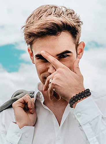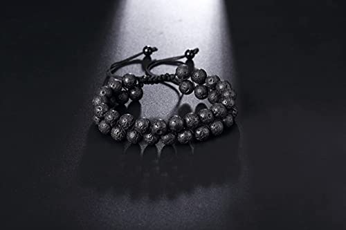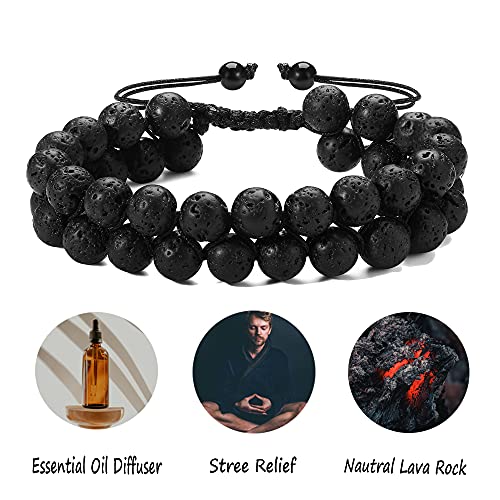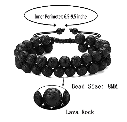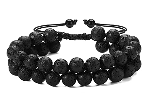 generic - اساور خرز لافا روك للرجال والنساء، اساور مزدوجة الطبقات للتخلص من القلق الطبيعي، سوار مضفر قابل للتعديل للعلاج بالروائح العلاجية، سوار خرز 8 ملم