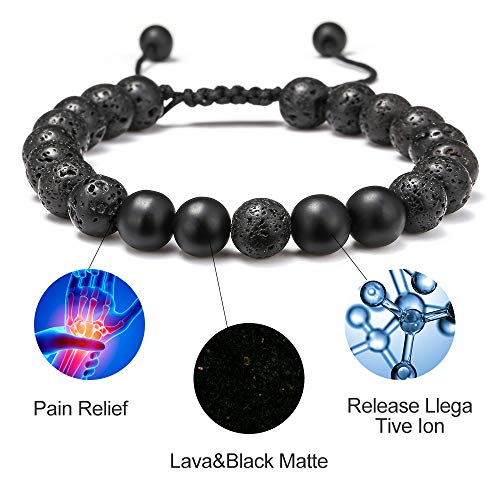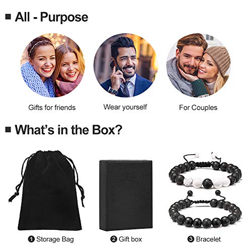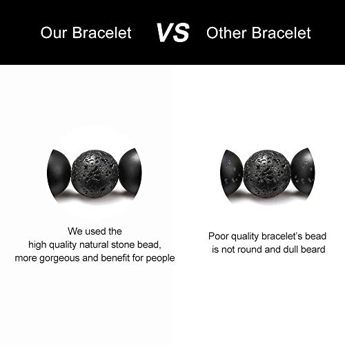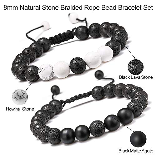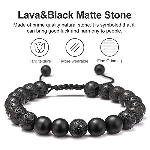 M MOOHAM - أساور من حجر الحمم البركانية لتخفيف التوتر، خرز يوجا قابل للتعديل وموزع زيت عطري علاجي 8 ملم مع الفيروز الأبيض والعقيق الأسود غير اللامع للقلق والرجال والنساء
